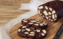 В миску вместе с сухарями всыпаем какао, сахар и специи и перемешиваем. Далее томим сливочное масло и вливаем в миску и снова перемешиваем. Потом слегка подогреваем молоко и постепенно вливаем в массу и быстренько перемешиваем рукой.