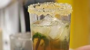 Далее толчем в ступки мяту и перекладываем в бокал, туда же добавляем сок лайма и ванильный сироп. Далее в бокал ложем лед и наливаем карамельный сироп. Все готово.